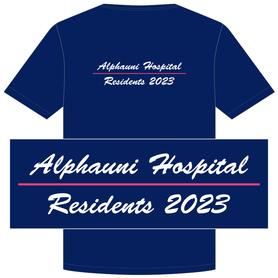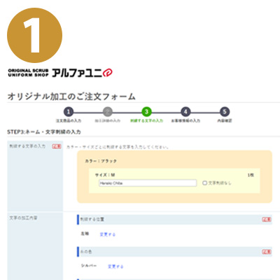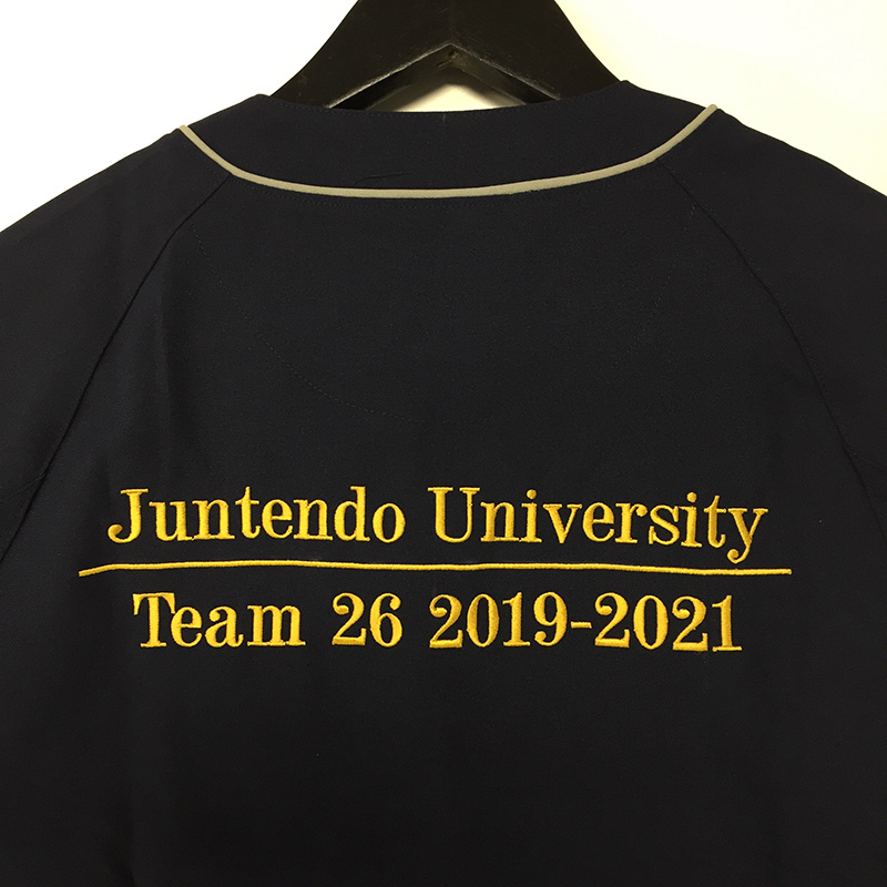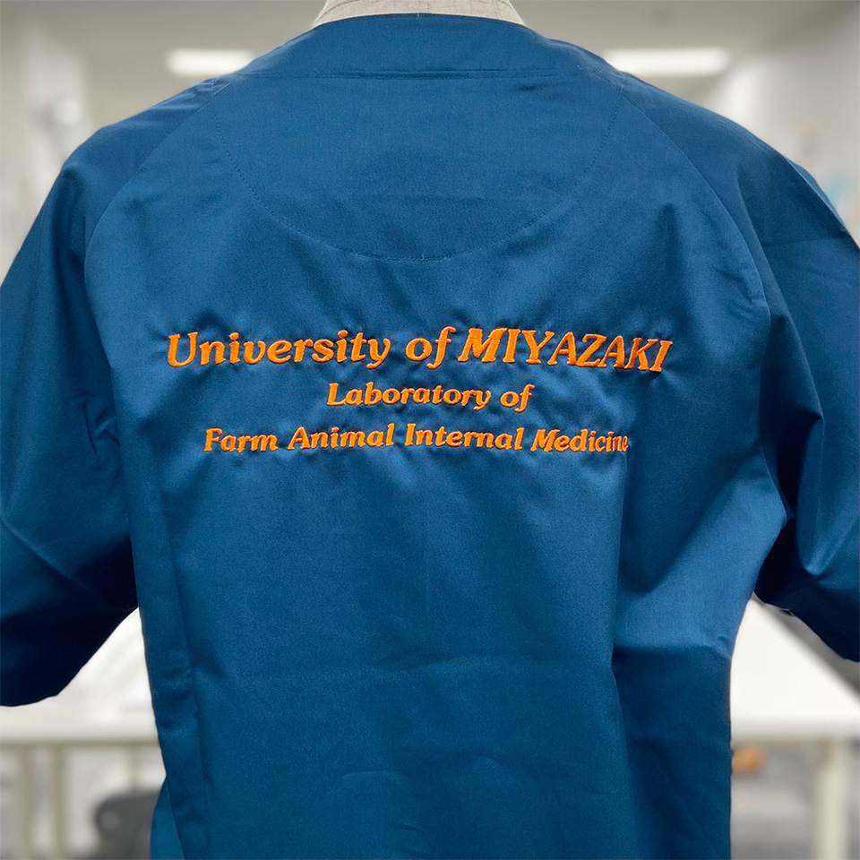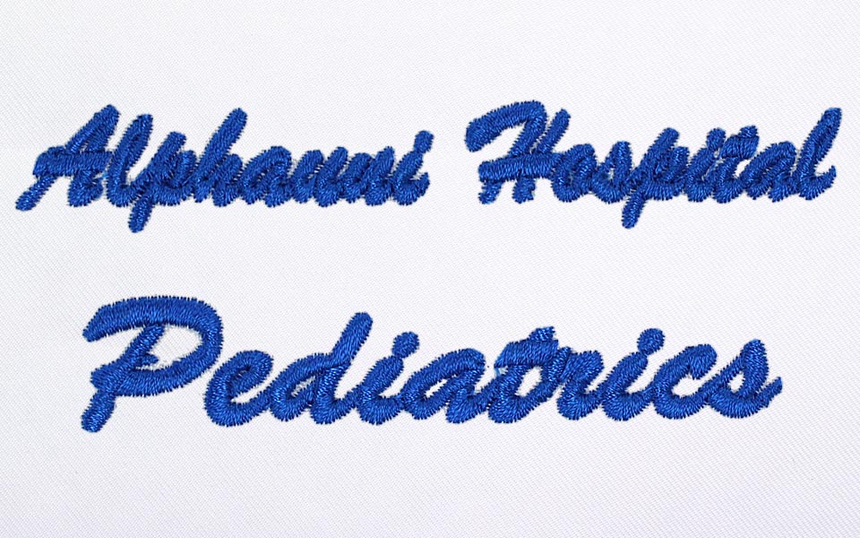 スクラブやウェアの背中に、企業・病院・学校・チーム名称、理念や格言など、自由な文章を刺繍する加工のことです。