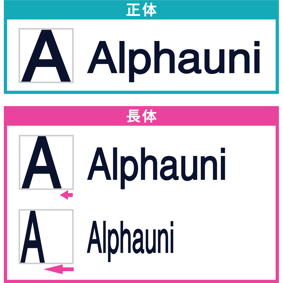 ※長体とは、横幅を縮めて縦長に変形させた文字のことを指します。