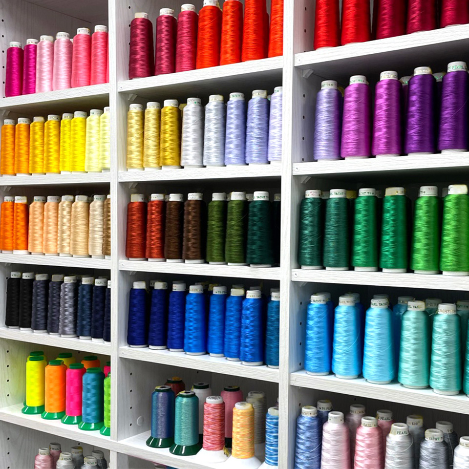 えらべるフォント刺繍の書体(フォント)は英語33書体・日本語6書体から、刺繍糸色は基本色・特色からなる80種類以上の中からお選びいただけます。