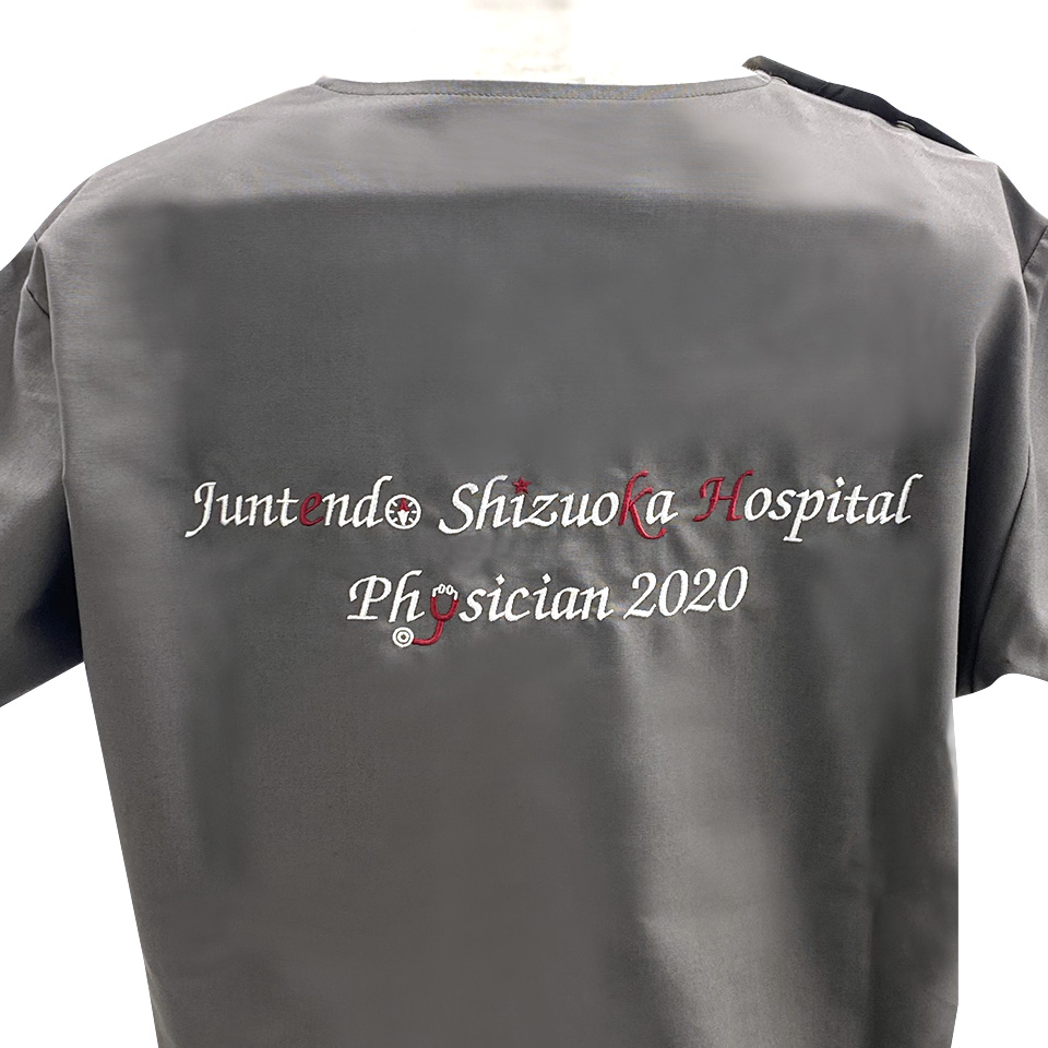完成したスクラブは想像以上に素敵なもので、研修医一同とても気に入っております。これからも大切に着用させていただきます。