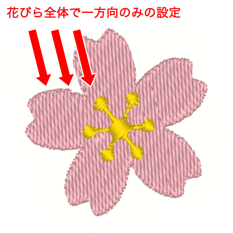 刺繍のクオリティは刺繍型データのつくり方で決まります。桜の刺繍で簡単に比較してみましょう。