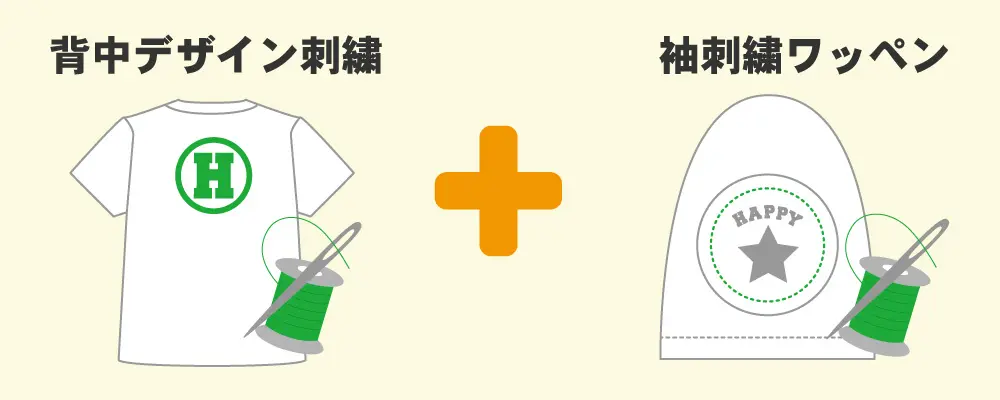 背中にえらべるフォント刺繍、袖にデザイン刺繍を入れて費用を抑える刺繍だけパターン!
