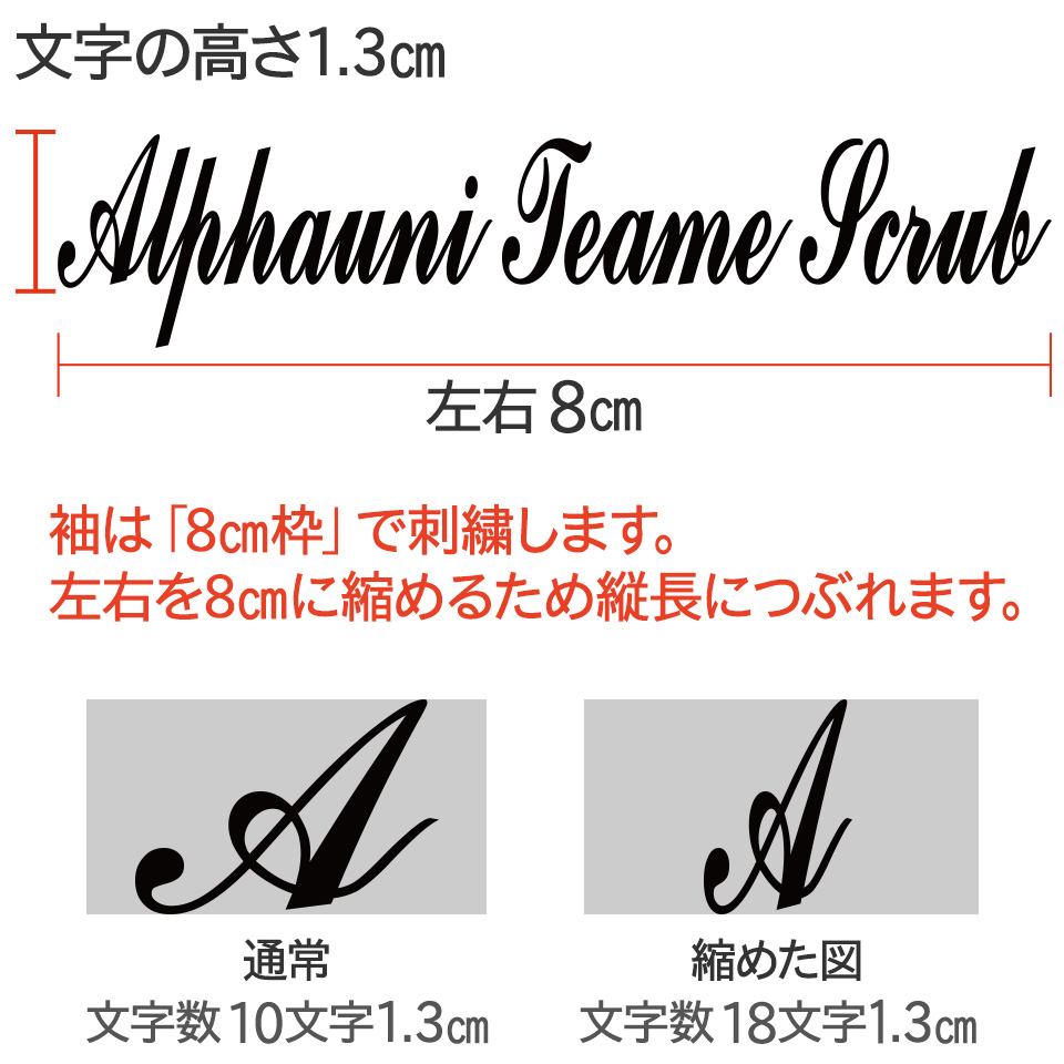 ネーム刺繍は基本3サイズ(高さ1cm・1.3cm・1.5cm)があり、弊社で調整して刺繍いたします。