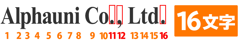 株式会社の省略Co.,Ltd.(文字数13文字+ピリオド2文字+カンマ1文字=合計16文字)