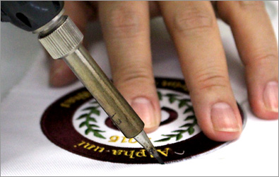 ワッペンの縁はヒートカット、裏面の処理はアイロン接着フィルム加工を行います。