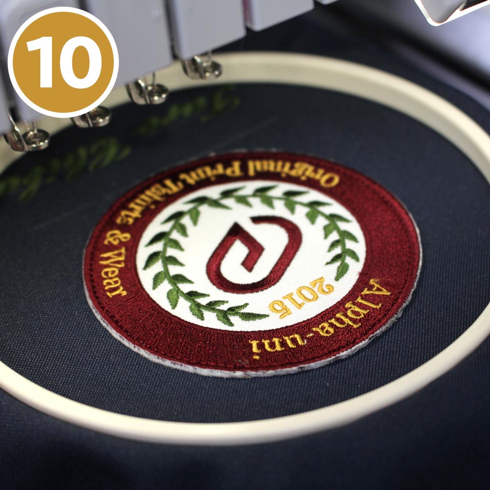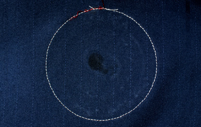 ワッペンの強度を高めるため、ミシンによる縫い付けがおすすめです。縁取りより2〜3mm内側をベース生地と同色糸でワッペンを縫い付けます。