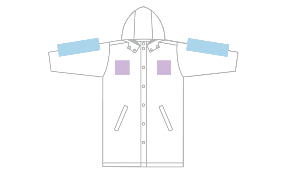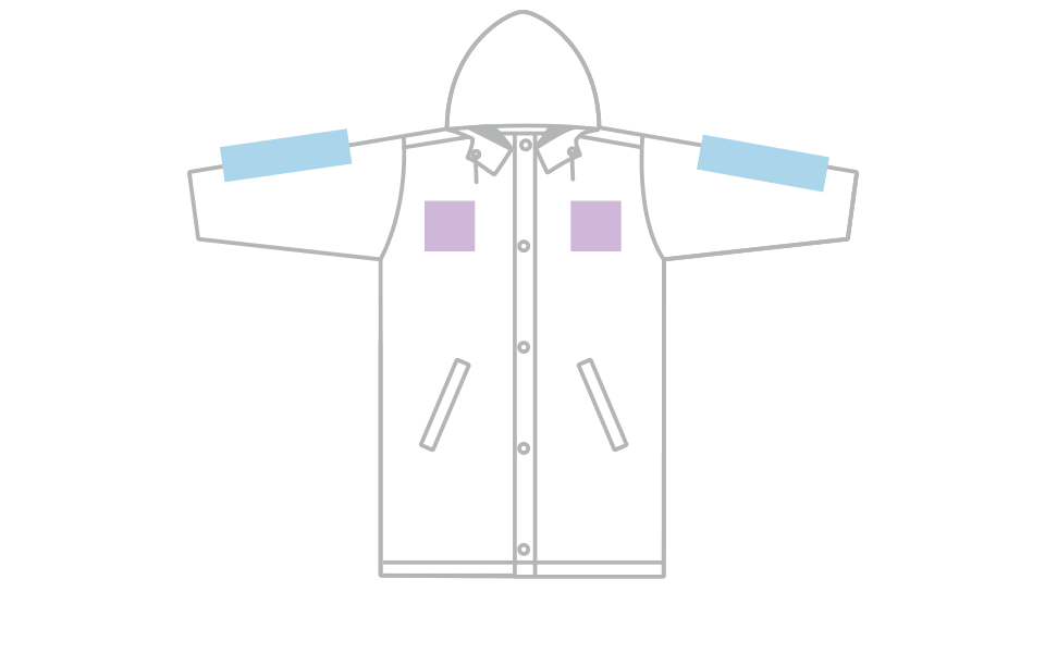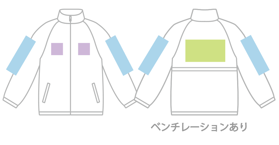 ベンチレーションのないコートはシルクプリントができません。転写プリントまたは、刺繍加工でご案内しております。