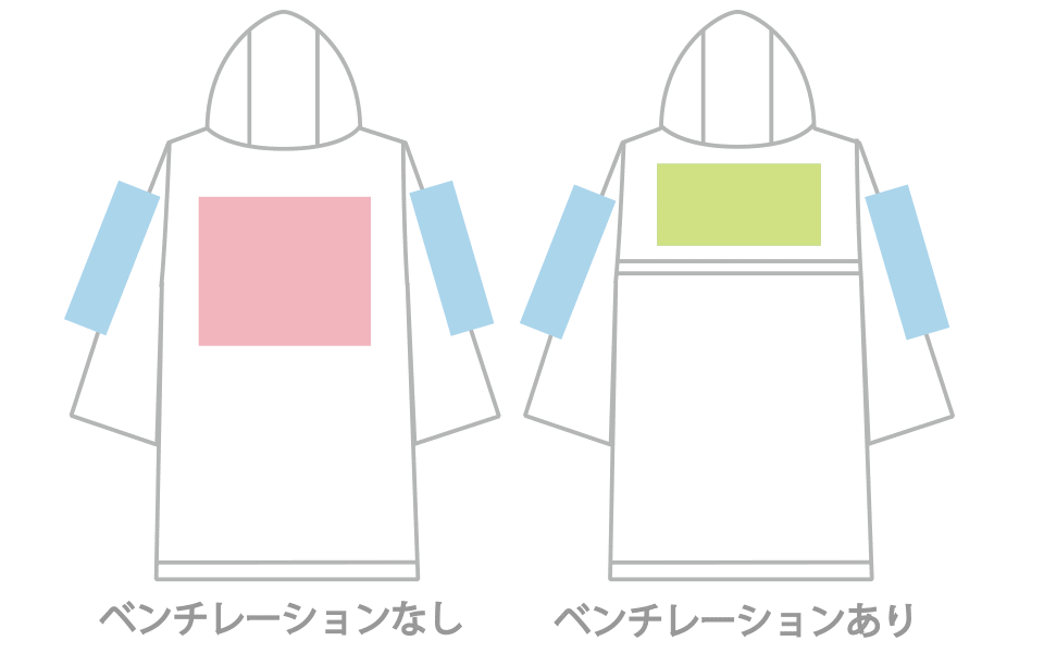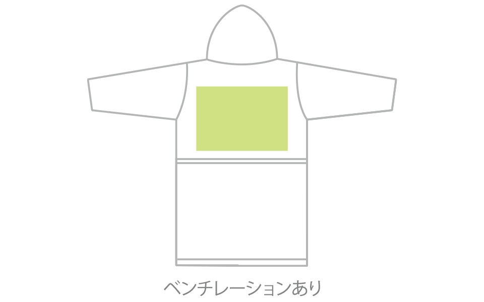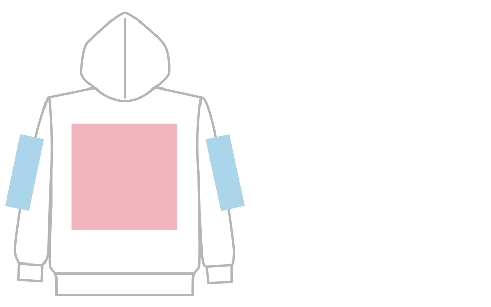 | 背中(ベンチレーションあり) | W30×H21 ※フードにプリントがかぶらないサイズ |