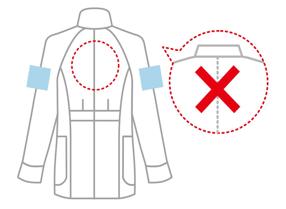 襟下・両サイドはメッシュ仕様のため、背中への加工は左右20cmまで入れられます。