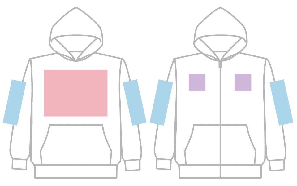 ウェアのプリント位置とサイズ