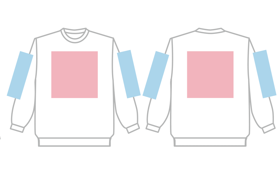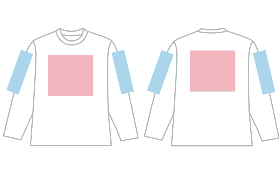 | 袖 | 両袖中心に縫い目があるため、プリント不可 |