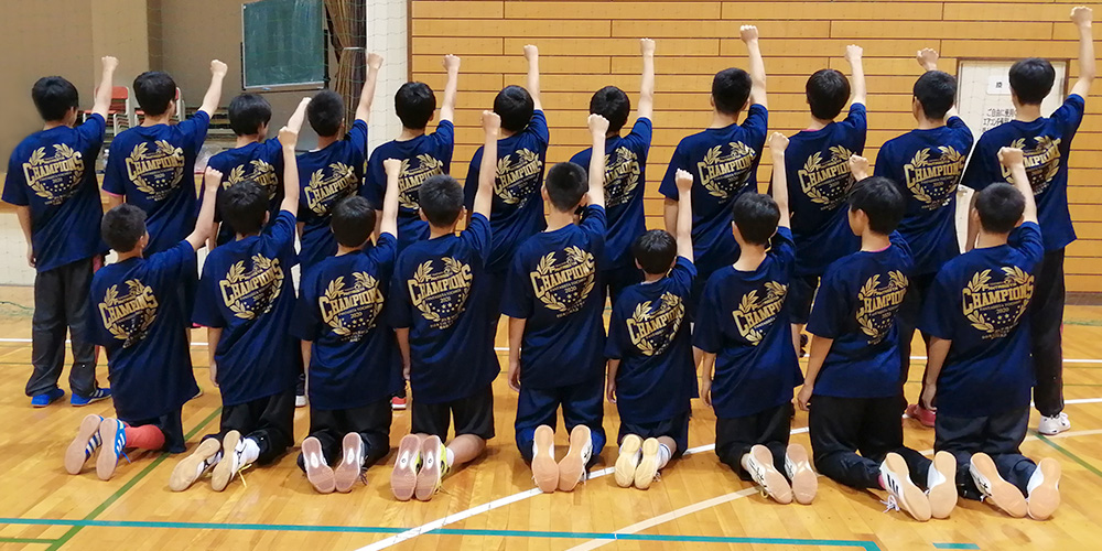 このたびは、優勝記念シャツの作成ありがとうございました。 コロナ禍で祝勝会を自粛した中お祝いできる方法を考えていました。デザインも好評で、子どもたちの喜ぶ姿を見ることができました。