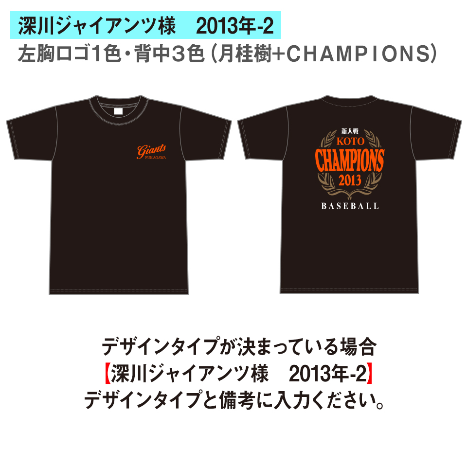 デザインを参考にお見積り備考にデザインタイプを入力ください。(例)「深川ジャイアンツ様 2013年-2」デザインタイプ