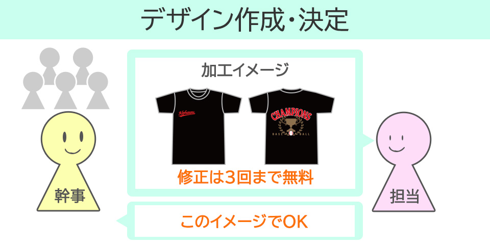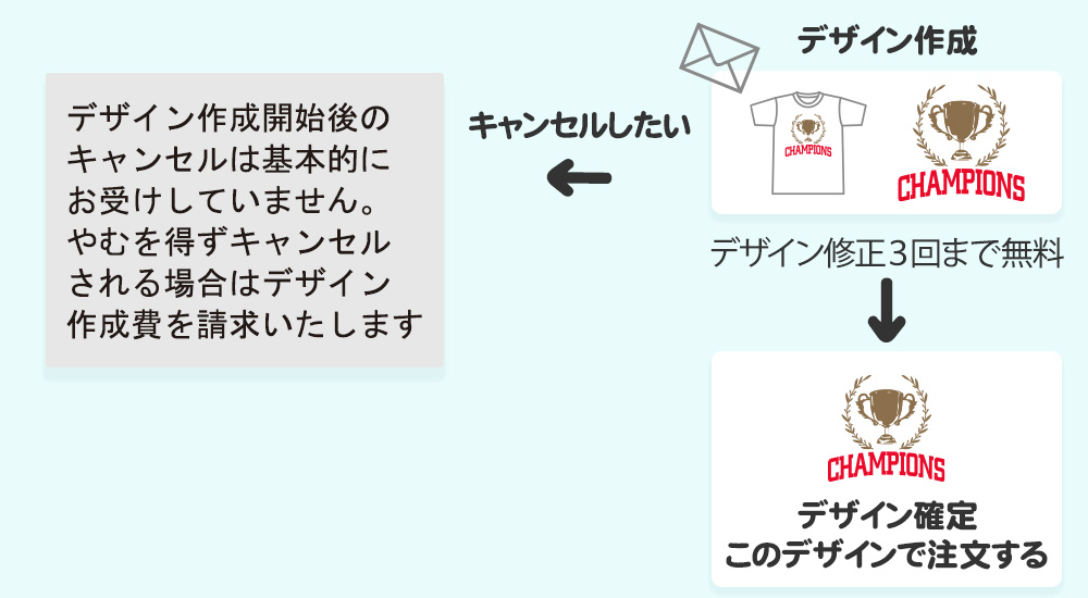 まずは無料のお見積りでご相談ください。いただいた内容からお見積り書を作成します。見積り内容の確認と注文の承諾をいただけましたら、デザインを作成します。デザイン作成後のキャンセルはデザイン作成費をいただきます。