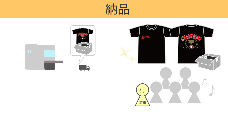 お客様のご要望にお応えして、アルファユニがかっこいいチャンピオンTシャツをデザインします。お見積り無料!