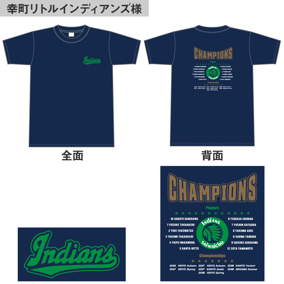 幸町リトルインディアンズ様 優勝記念Tシャツ