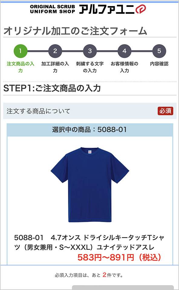 フォームでかんたん!チャンピオンTシャツのご注文