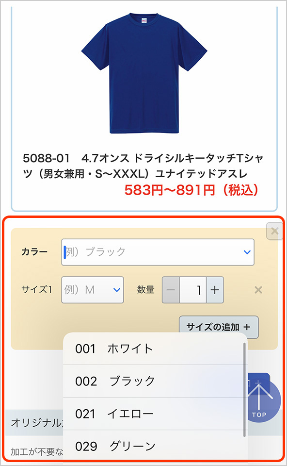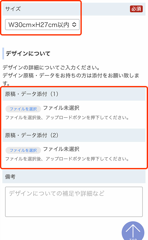 注文するサイズ・枚数の確定