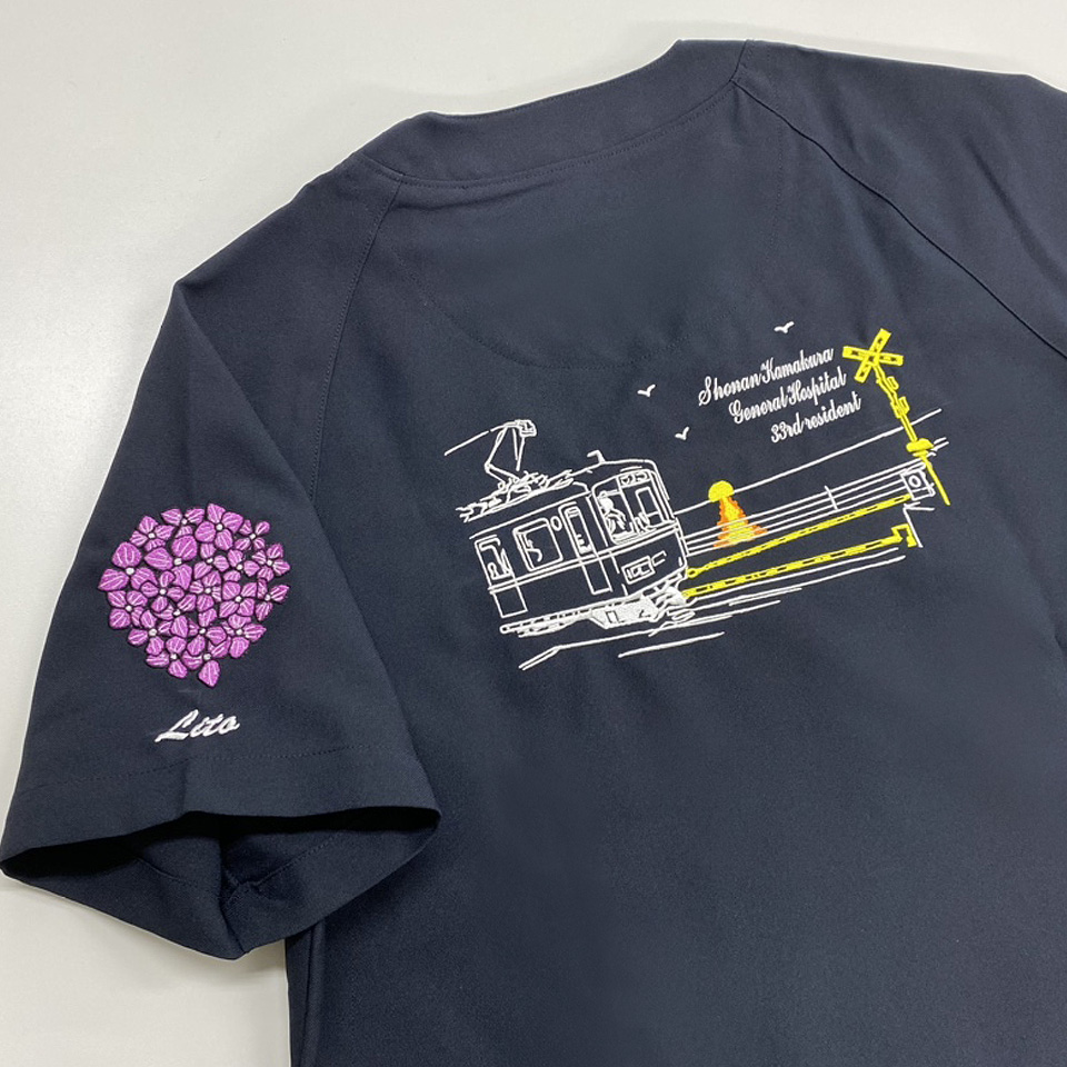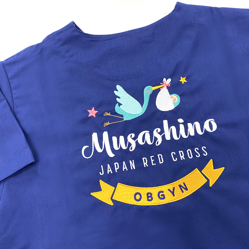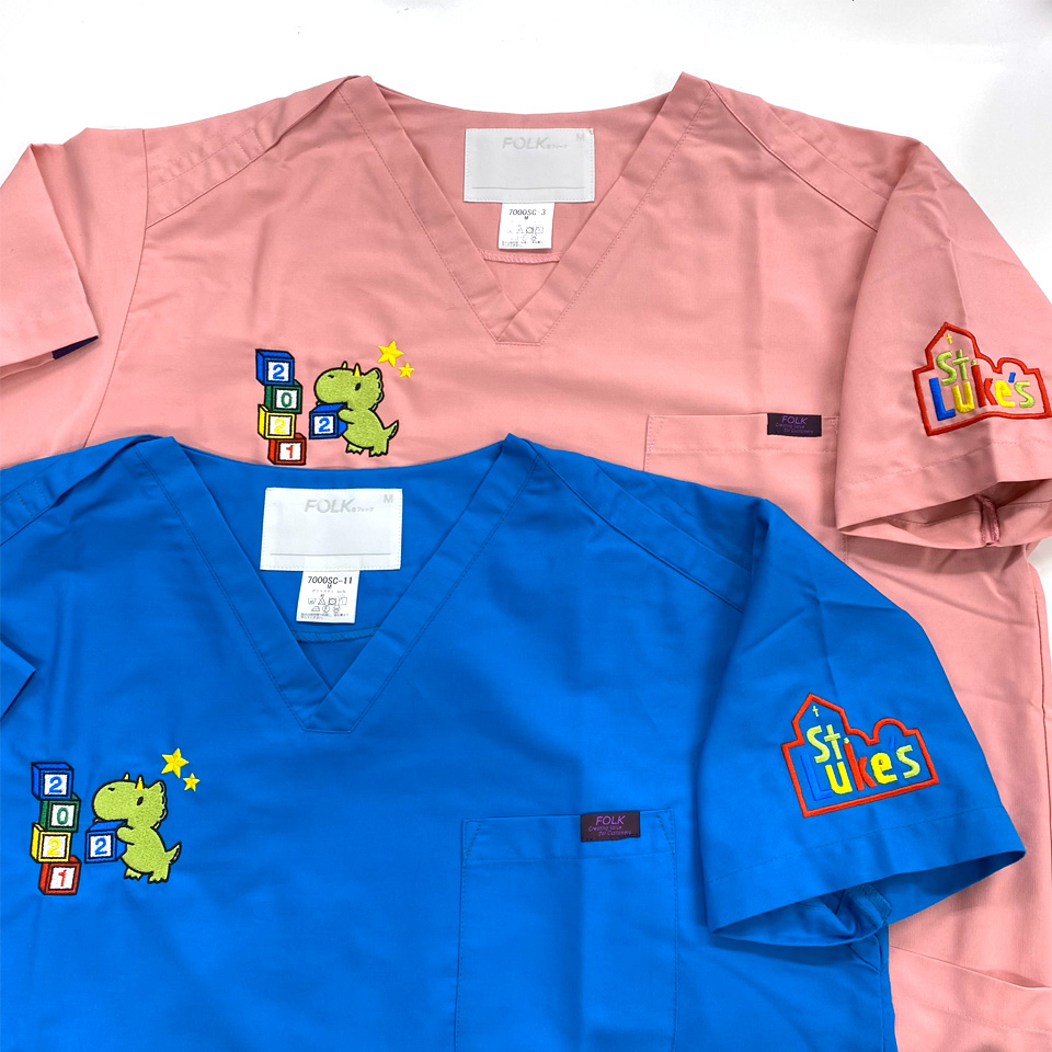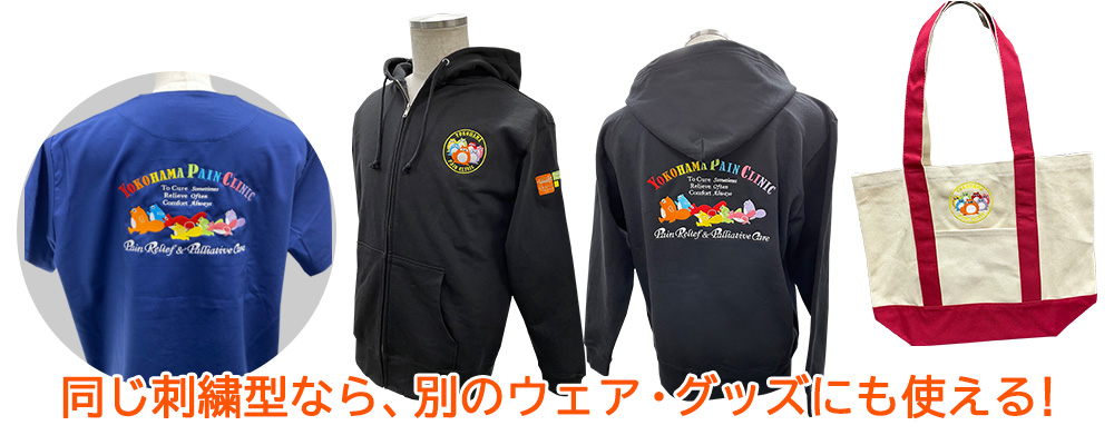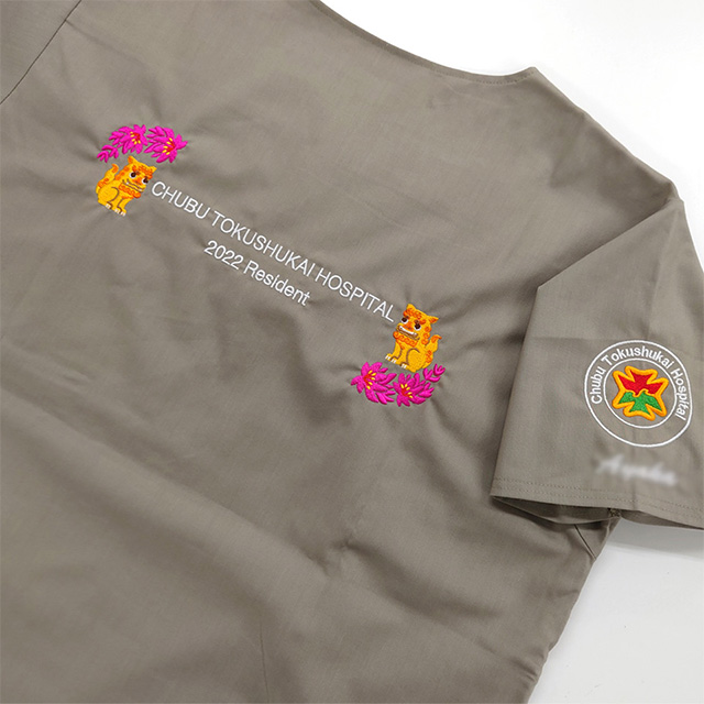 一つの刺繍型でスクラブもウェアにも刺繍ができる!