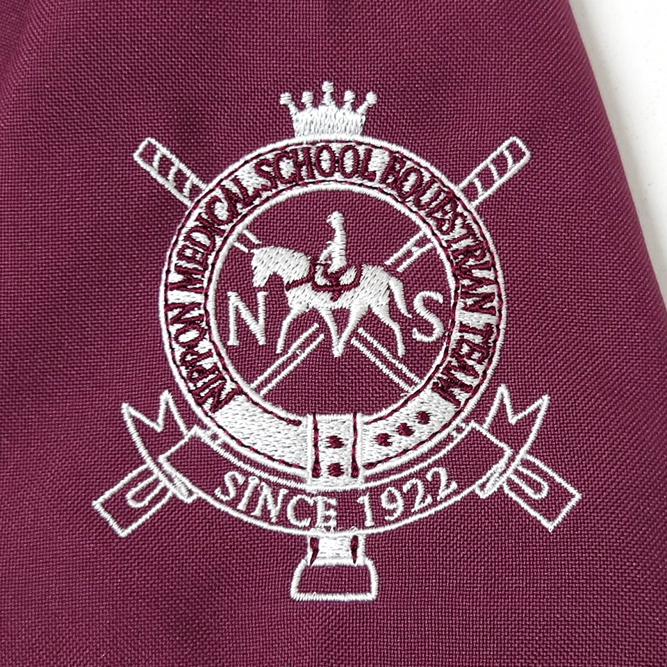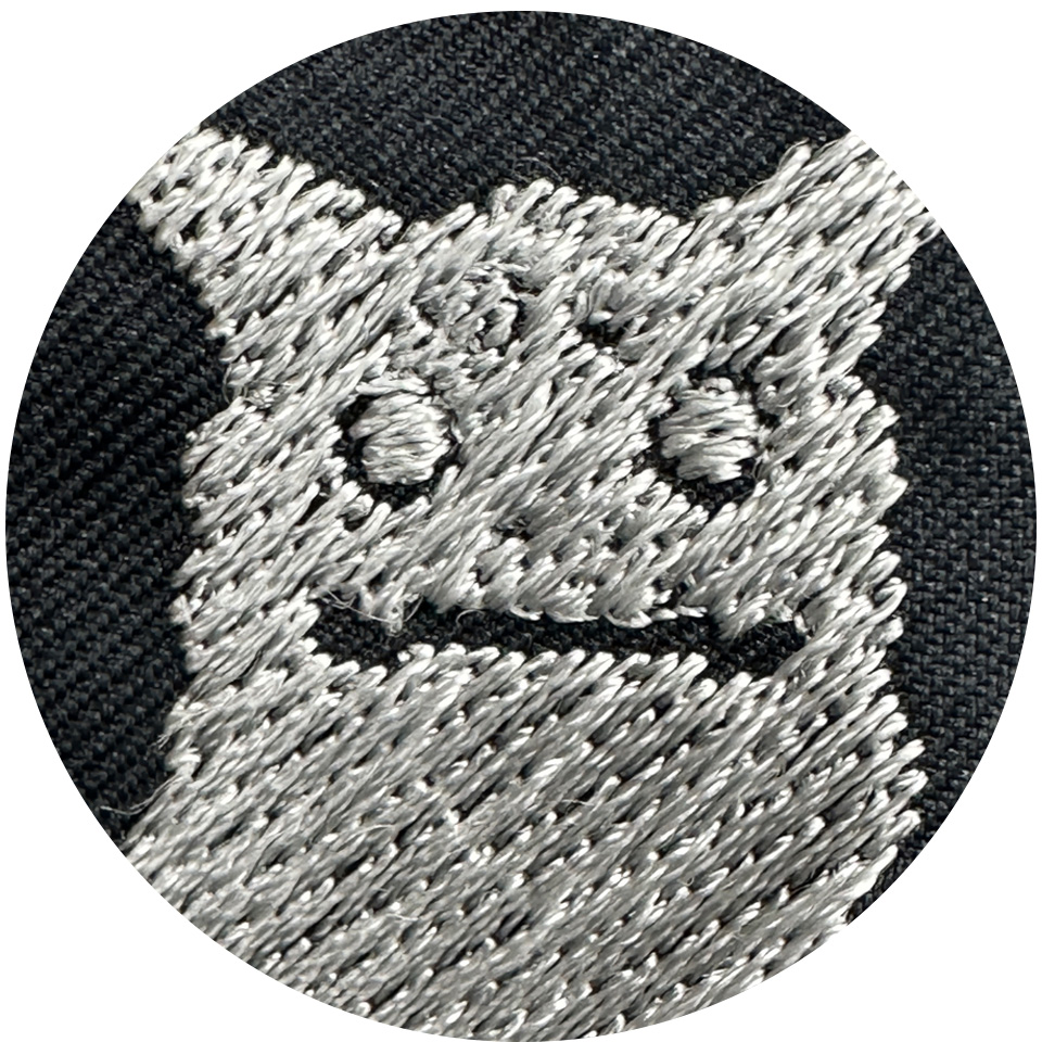 細かいデザインは通常の120Dの糸を使用することで細かい表現がつぶれることがあります。 アルファユニでは、ネーム刺繍1つとっても潰れないように75Dの細い糸を使い密度もあげています。 入れる文字でも密度は異なります。一工夫で力強いしっかりとした刺繍になります。