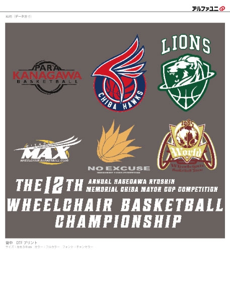 第12回長谷川良信記念・千葉市長杯争奪車いすバスケットボール全国選抜大会実行委員会スタッフ用として、製作のご依頼をいただきました。