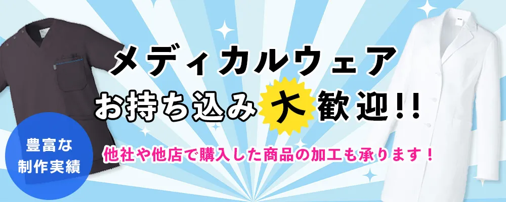 刺繍(名入れ)は、所属部署や役職、氏名などを明確にし、患者さんや同僚からの識別を容易にする重要な役割があります。