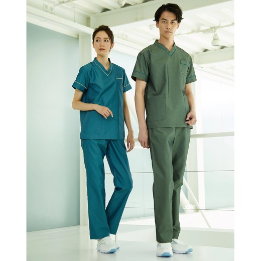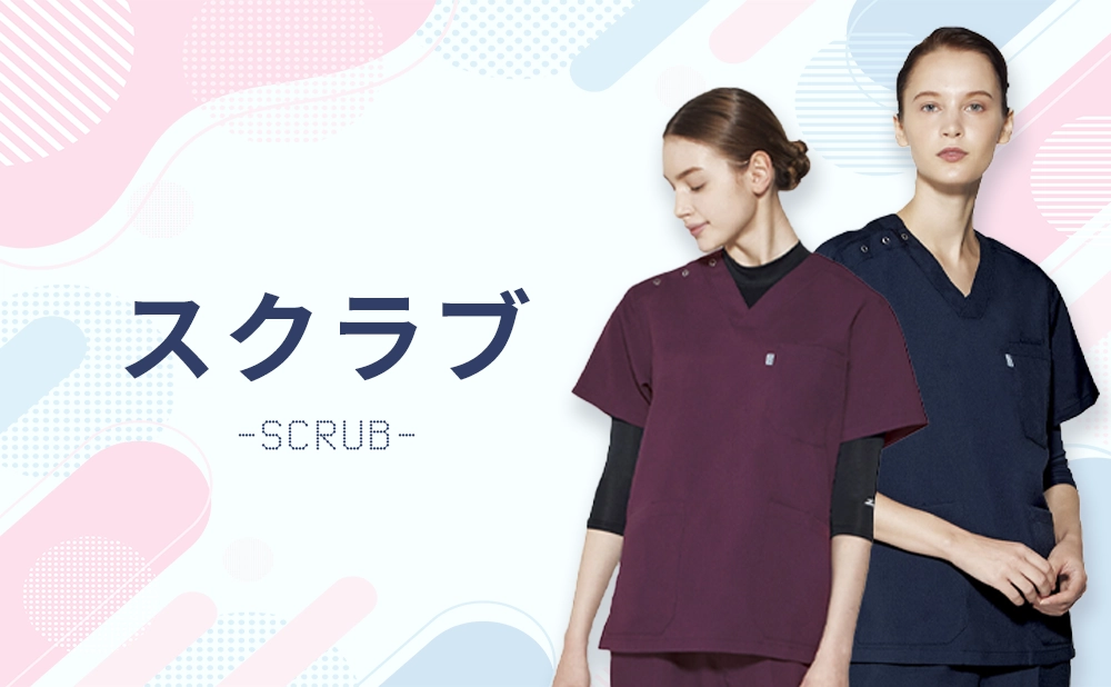 一方、スクラブは手術着から派生したもので、脱ぎ着が容易で速乾性があり、感染対策や動きやすさが重視される環境(手術室、救急、病棟業務など)で広く着用されています。 -